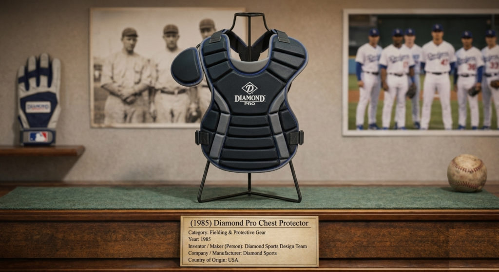 The Diamond Pro Chest Protector is designed to provide maximum protection for catchers while maintaining comfort and mobility. Introduced in 1985, it features lightweight materials and reinforced padding to absorb impact from fast pitches and foul balls.